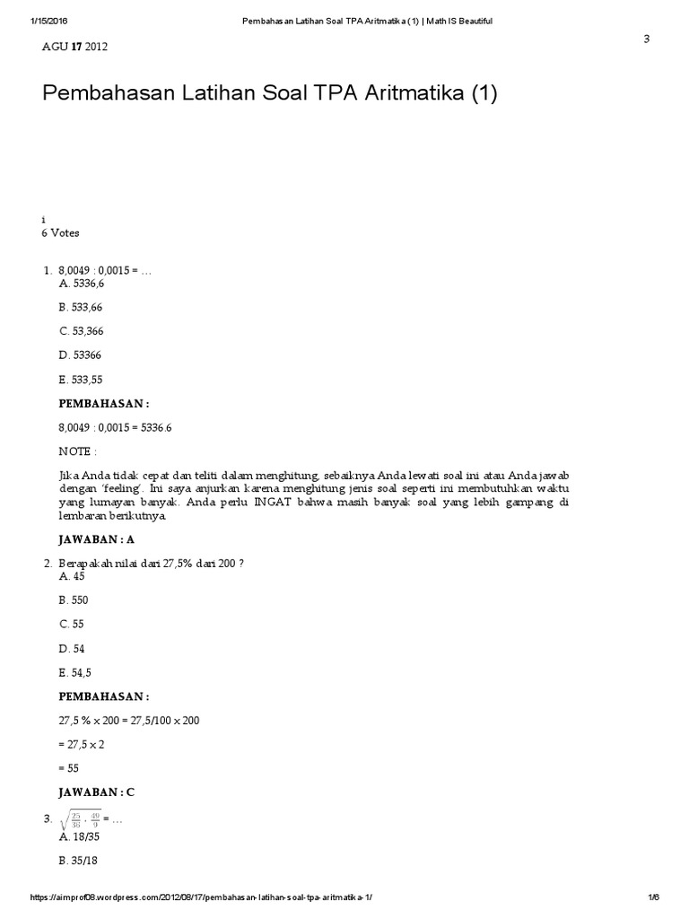Soal tpa matematika dan pembahasan pdf. We did not find results for: Check spelling or type a new query. Maybe you would like to learn more about one of these?